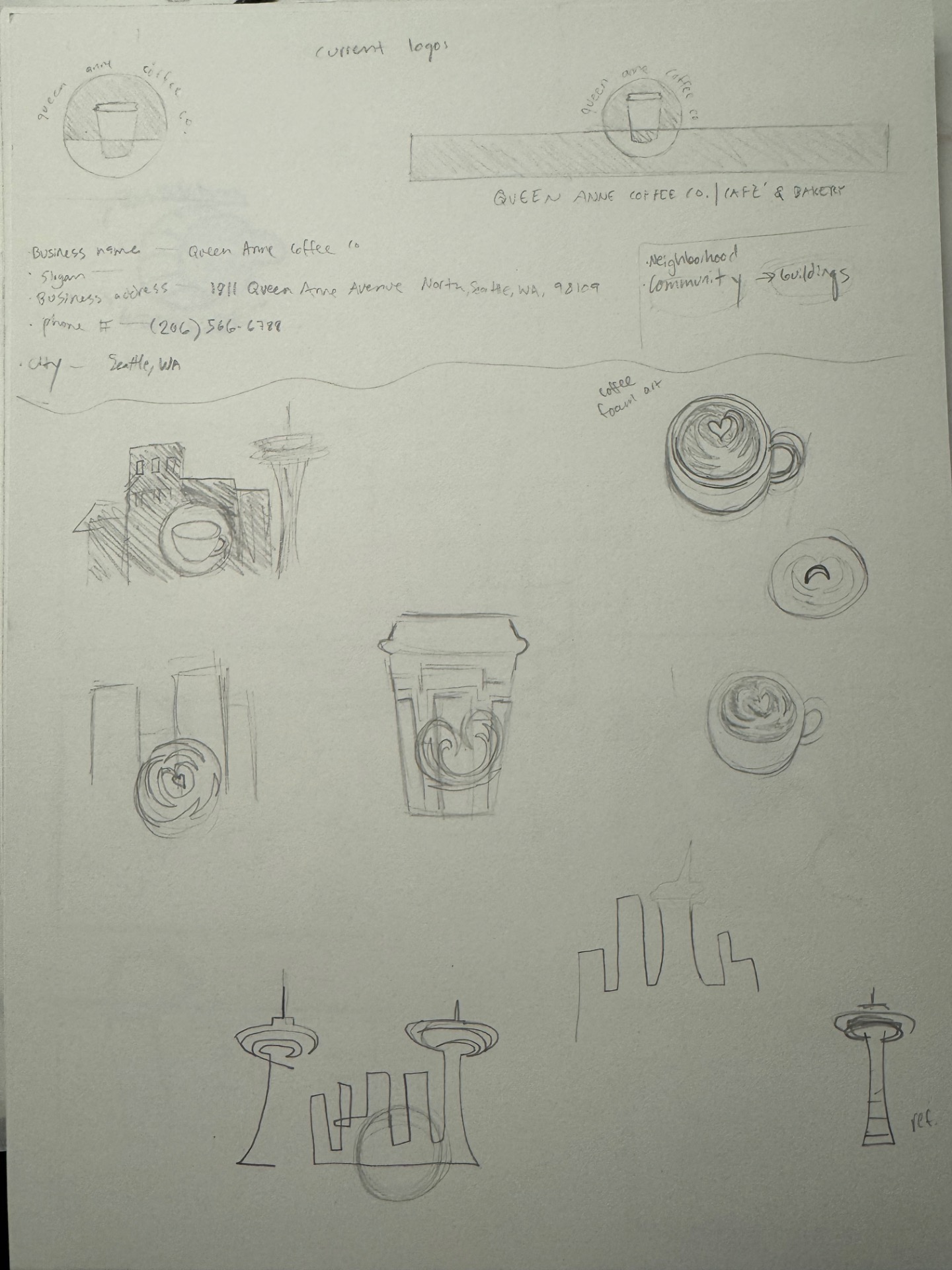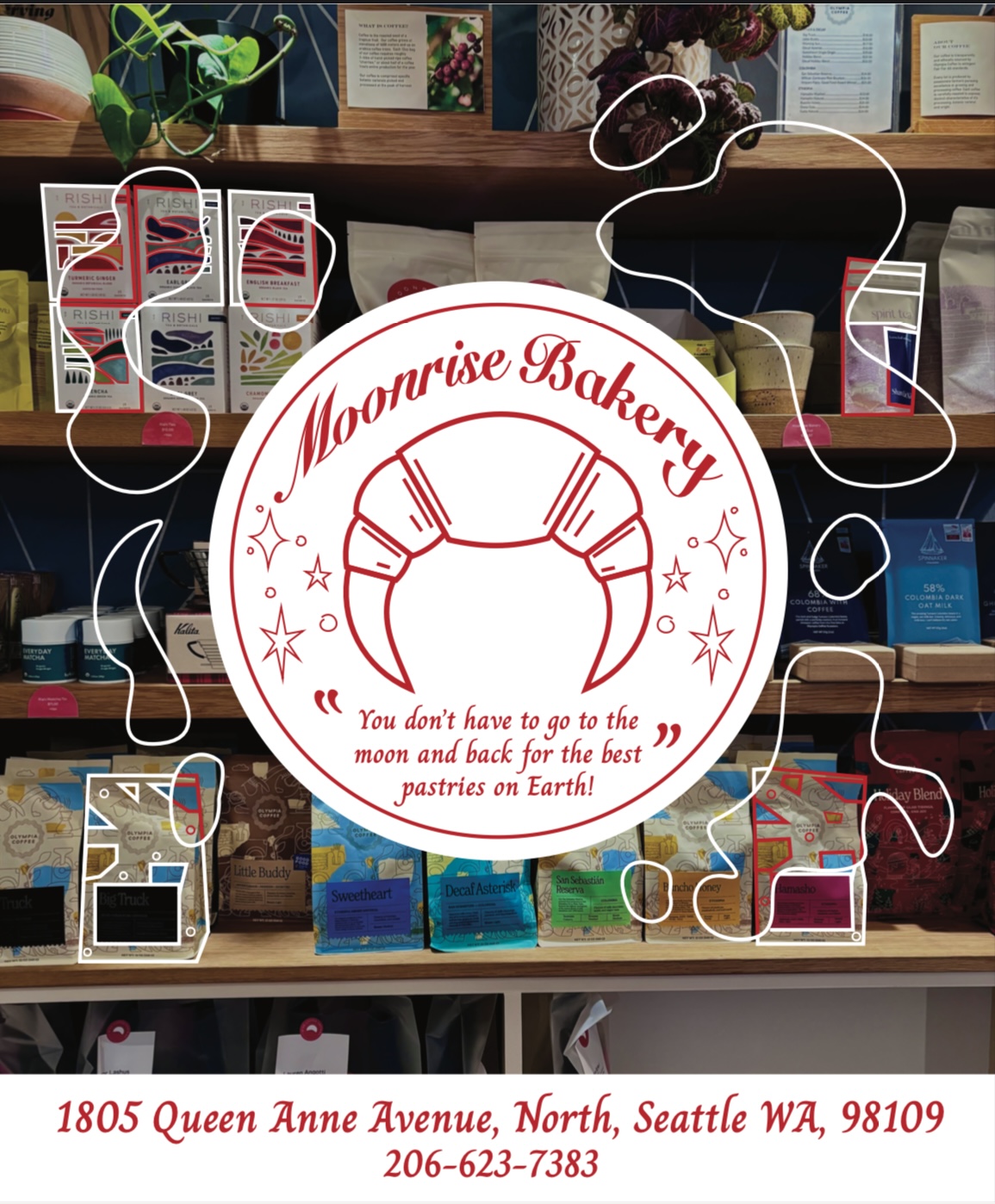The business we initially picked was Queen Anne's Coffee Co. But, plans changed when Kate walked there and discovered it was closed. Instead, she took photos of Moonrise Bakery, which was close by, leading us to change our business to Moonrise instead.