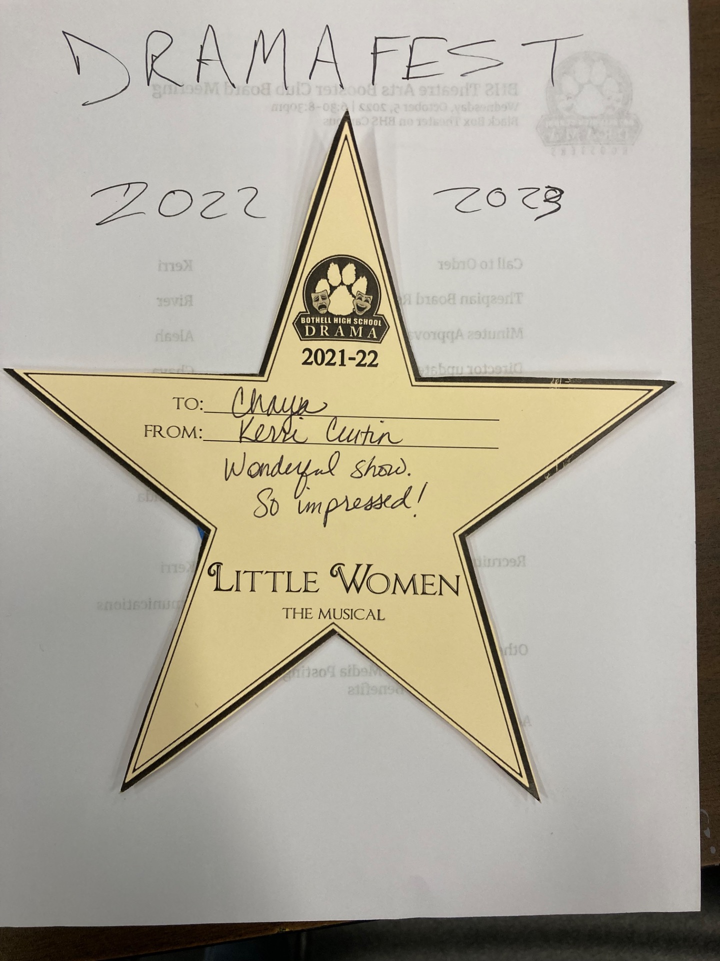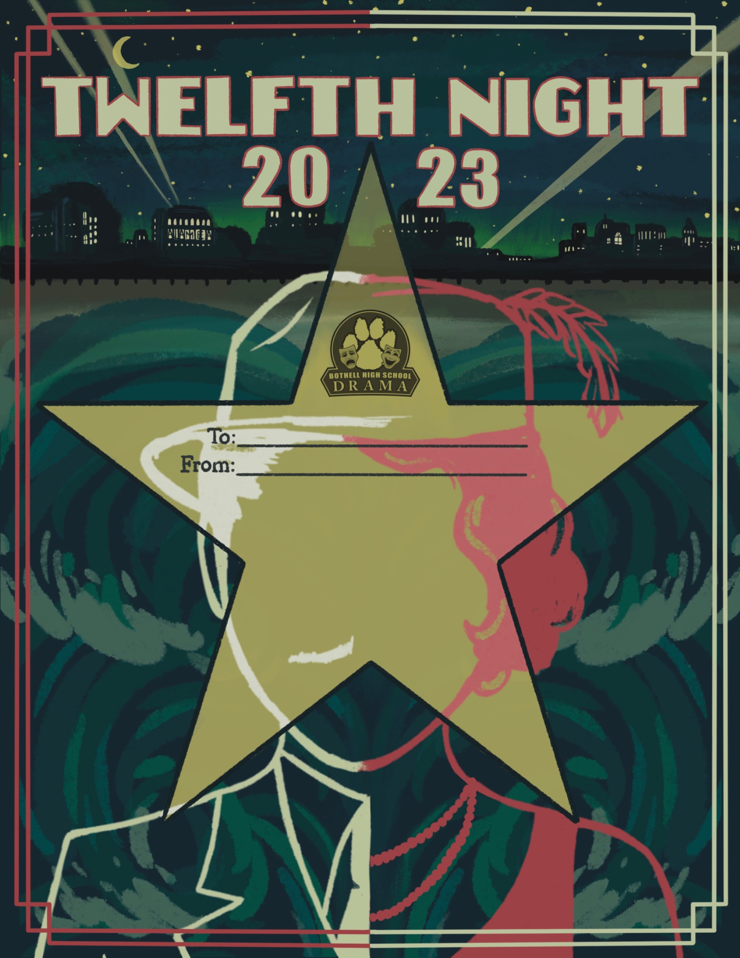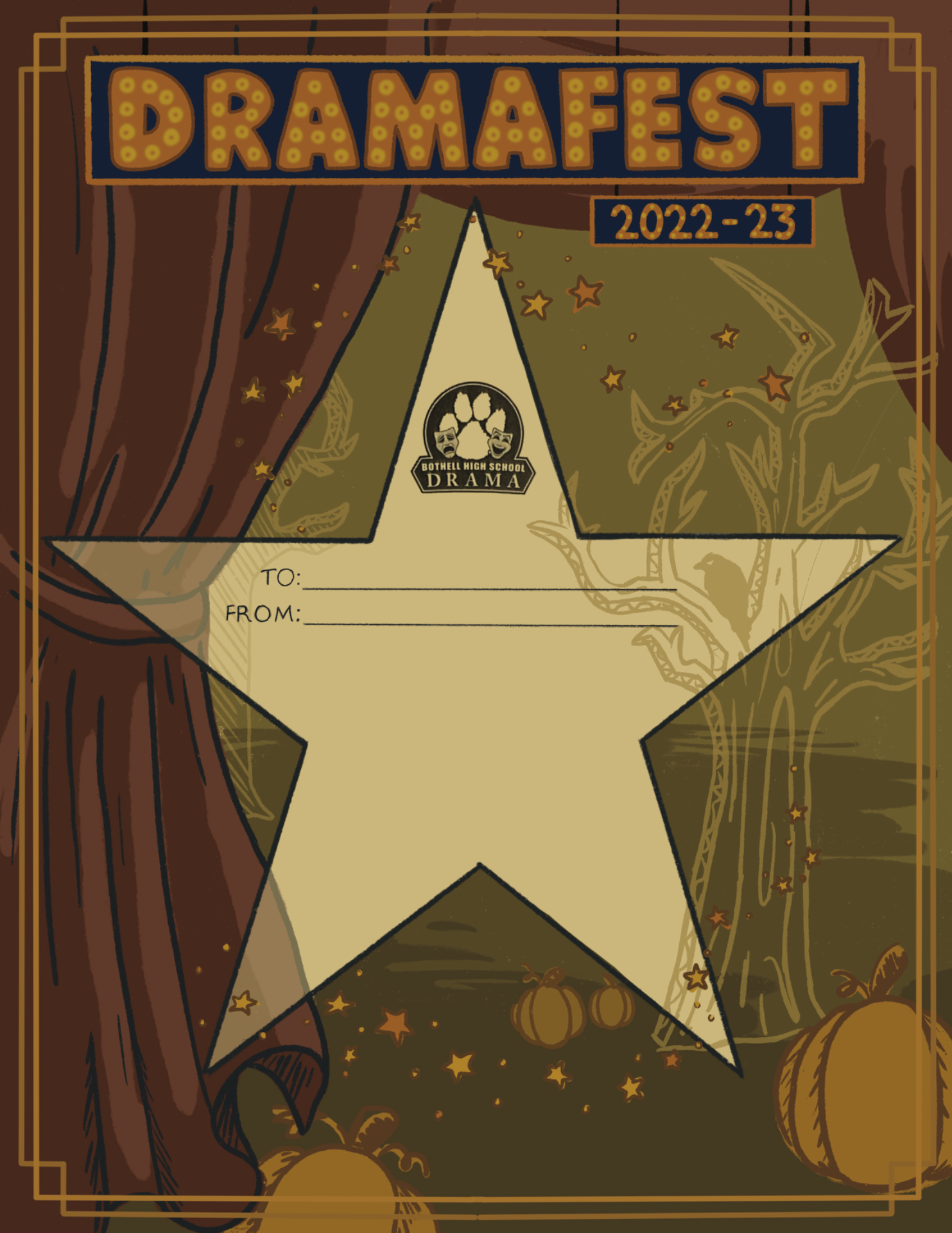 In 2022, the BHS Drama Booster Board changed Stargrams from a cut out paper star to a full page and needed an artist to create a design for each production. As a student involved in the drama program as an actor, I volunteered to create designs starting my junior year.